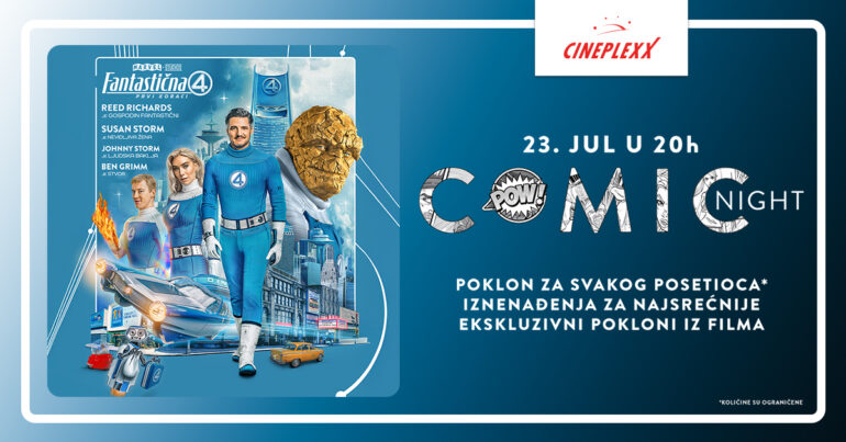 Spremite se za novo poglavlje Marvel univerzuma 23. jula u 20h uz film "Fantastična četvorka: Prvi koraci". U bioskopu Cineplexx Novi Sad očekuje vas još jedan fantastičan Comic Night događaj uz poklone, druženje i nove superherojske priče na velikom platnu. Ulaznice u prodaji! Fanove očekuje originalni poklon poster*, vaučer* sa popustom za Svemirski muzej na Petrovaradinskoj tvrđavi, kao i ekskluzivni pokloni iz filma. Za najsrećnije poklone su obezbedili brend Thready u vidu majica sa motivima inspirisanim filmom i Čarobna knjiga koja poklanja knjige iz edicije The Best […]