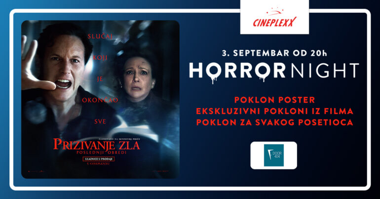 Ed i Lorejn suočavaju se sa svojim poslednjim, najjezivijim slučajem zasnovanim na stvarnoj priči porodice Smurl u novom poglavlju filma „Prizivanje zla: Poslednji obredi" na Horror Night događaju 3. septembra u 20 časova u bioskopu Cineplexx Novi Sad. Ulaznice u prodaji! Posetioce očekuju poklon* posteri kao i vaučeri sa popustom na Door 404 Escape room avanturu. Najsrećnije gledaoce očekuju ekskluzivni pokloni iz filma, dok je Escape Room Door 404 pripremio poklon vaučere za besplatnu igru po izboru. Ovaj nastavak donosi novo uzbudljivo poglavlje kultne priče nastale […]