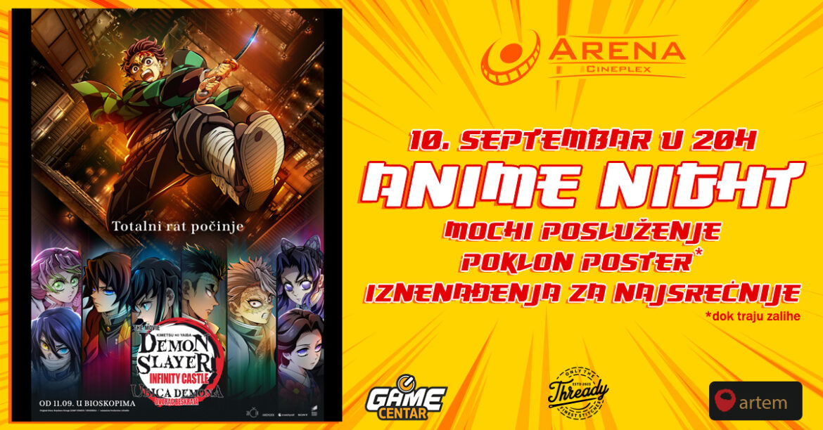 Da li ste spremni za legendarnu bitku?! Anime night uz poklone i slatku mochi degustaciju 10. septembra od 20 časova u Areni okuplja najveće obožavatelje japanske mange u dugoočekivanoj filmskoj adaptaciji “Ubica demona: Dvorac beskraja”. Ulaznice su u prodaji!