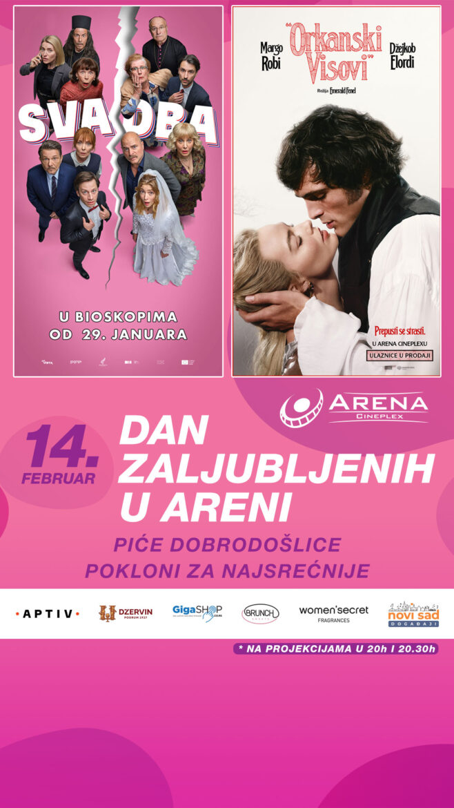 Ulaznice za sve projekcije 14. februara su u prodaji na blagajnama bioskopa Arena Cineplex!