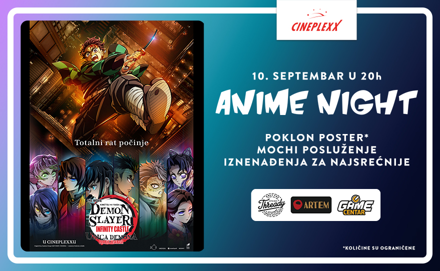 Vreme je za završni obračun na Anime Night događaju uz film „Ubica demona: Dvorac beskraja” , čuvene mochi kolačiće i sjajne poklone u sredu, 10. septembra od 20 časova u bioskopu Cineplexx Novi Sad. Ulaznice su u prodaji!
