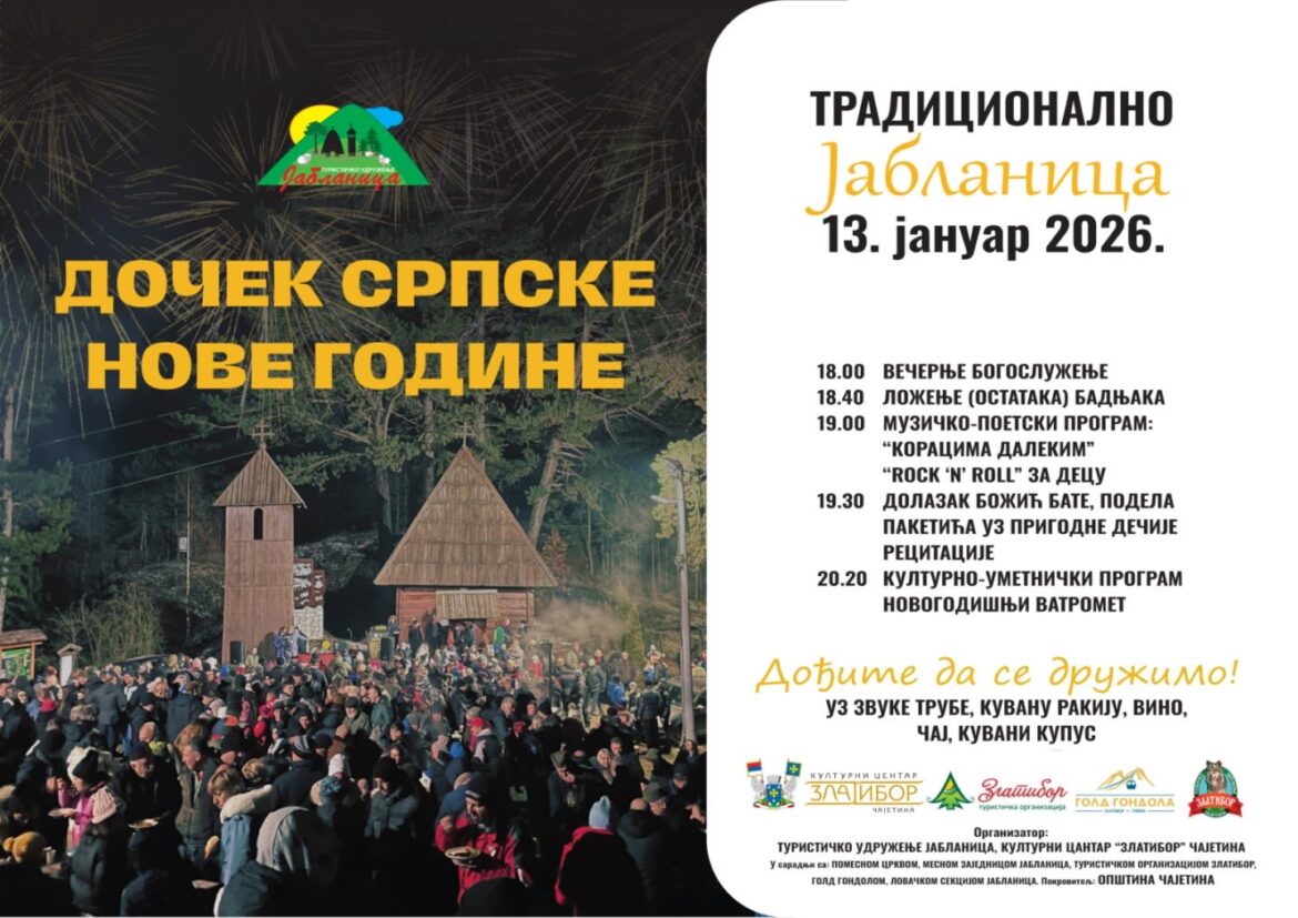 U subotu, 13. januara 2026. godine, u porti crkve u Jablanici, održaće se tradicionalni doček Srpske Nove godine, uz bogat duhovni i kulturno-umetnički program.