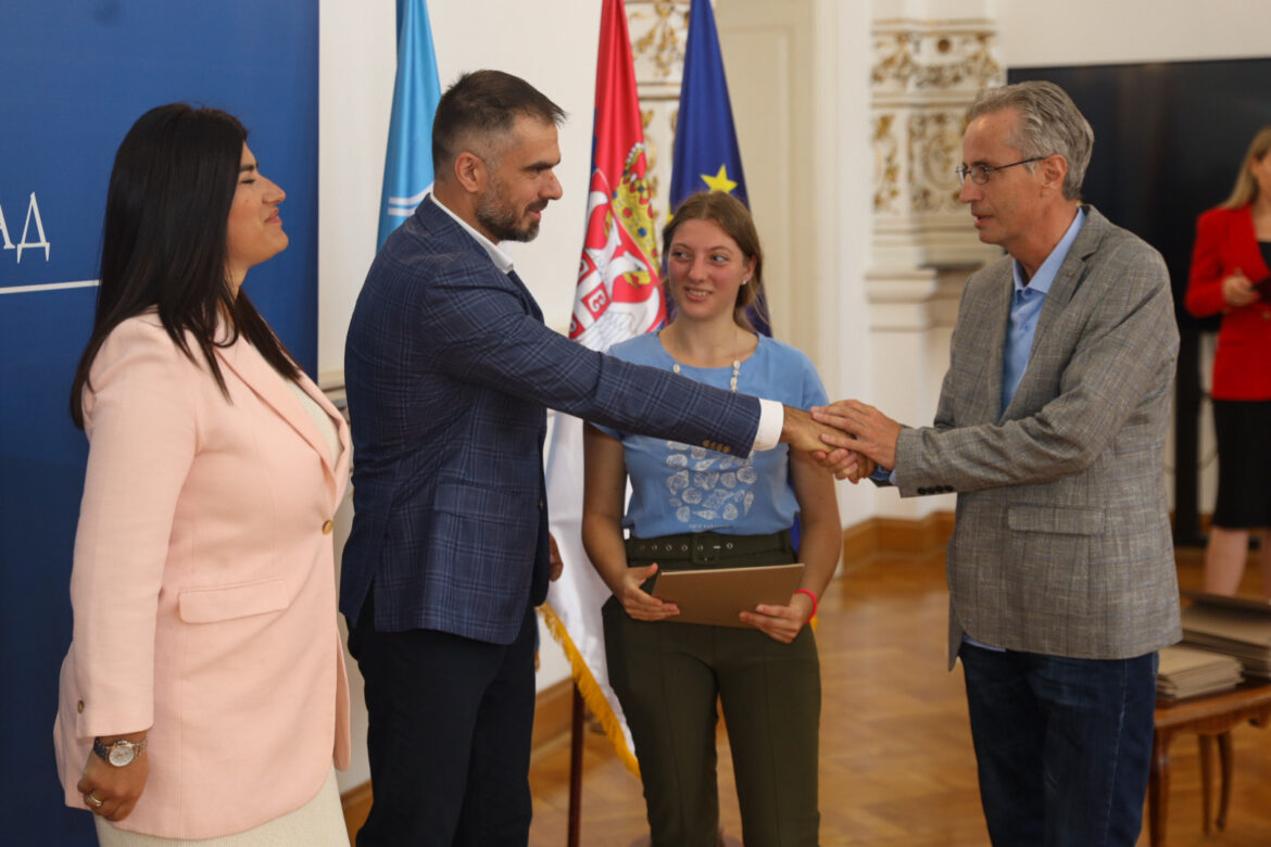– Danas je dan kada Grad Novi Sad tradicionalno svojim vrlim đacima odaje priznanja za veliki trud. Uručujemo Vidovdanske nagrade mladim ljudima koji su svojim radom, znanjem i upornošću pokazali šta znači pravi uspeh u obrazovno-vaspitnom radu. Ove nagrade nisu samo povelja i njen novčani deo – one su simbol truda, discipline i marljivosti koje poštujemo i kao društvo i kao grad. One govore o tome šta ste postigli, ali još više, šta možete da postanete i šta ćete tek biti. Ova godina je prošla u nezamislivim iskušenjima, za koje se nadam da se nikada više neće ponoviti, a time su vaši ostvareni uspesi još vredniji. Od srca vam čestitam na Vidovdanskoj nagradi. Sanjajte tiho, radite hrabro, a neka vaše delo bude vaš najglasniji odgovor i pokazatelj šta sve možete. Želim vam uspeh i mudrost u svemu što vas u budućnosti čeka – rekao je gradonačelnik Mićin.