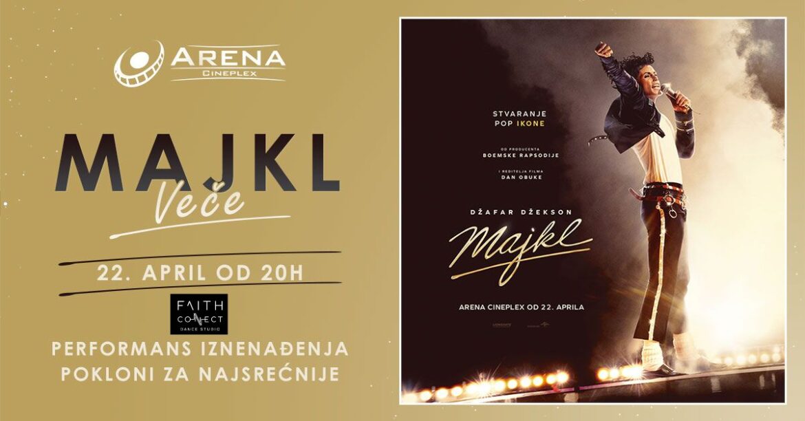 Pre projekcije od 20 časova, u okviru Majkl večeri očekuje vas performans iznenađenja, a najsrećnije fanove Faith Connect Dance studio obradovaće mesečnom članarinom u njihovom studiju.