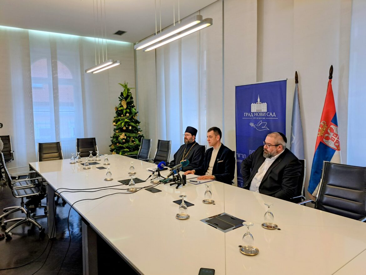 Predsednik Organizacionog odbora za obeležavanje godišnjice Novosadske racije Miroslav Ilić, sekretar Crkvene opštine protojerej-stavrofor Vladan Simić i predsednik Jevrejske opštine Novi Sad Ladislav Trajer predstavili su u Gradskoj kući program obeležavanja 84. godišnjice Pogroma u Novosadskoj raciji.