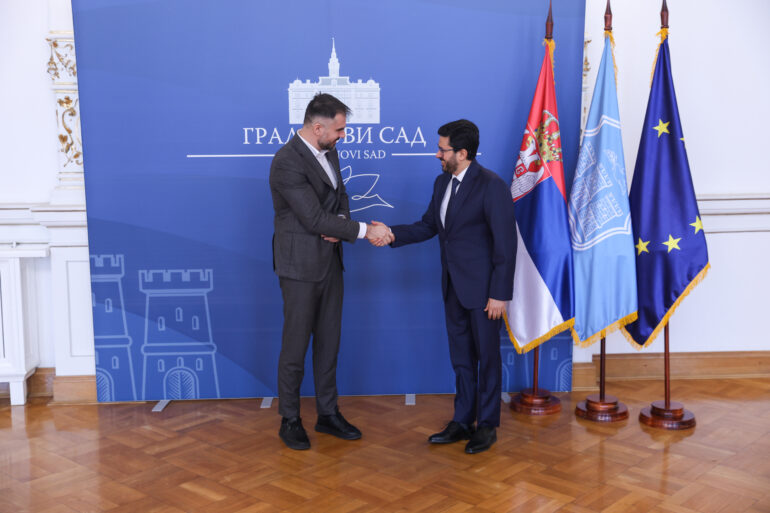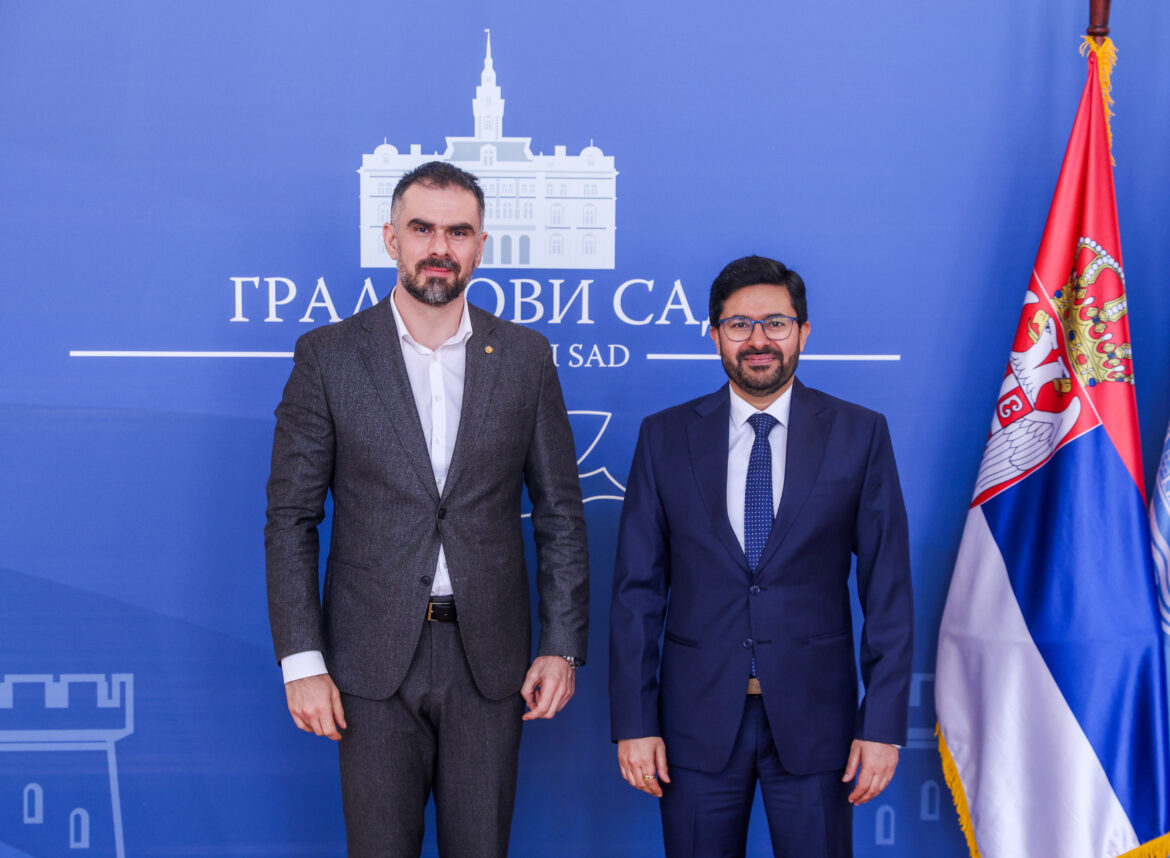 Gradonačelnik Novog Sada Žarko Mićin primio je u Svečanoj sali Gradske kuće u prvu zvaničnu posetu ambasadora Republike Indije u Republici Srbiji Njegovu ekselenciju gospodina Abišeka Šuklu, koji je početkom godine stupio na dužnost. U razgovoru je bilo reči o unapređenju saradnje u oblastima digitalne ekonomije, obrazovanja, kulture i održivog turizma, kao i o povezivanju institucija i privrednih subjekata, u svetlu najnovijih protokola o saradnji potpisanih između Srbije i Indije.