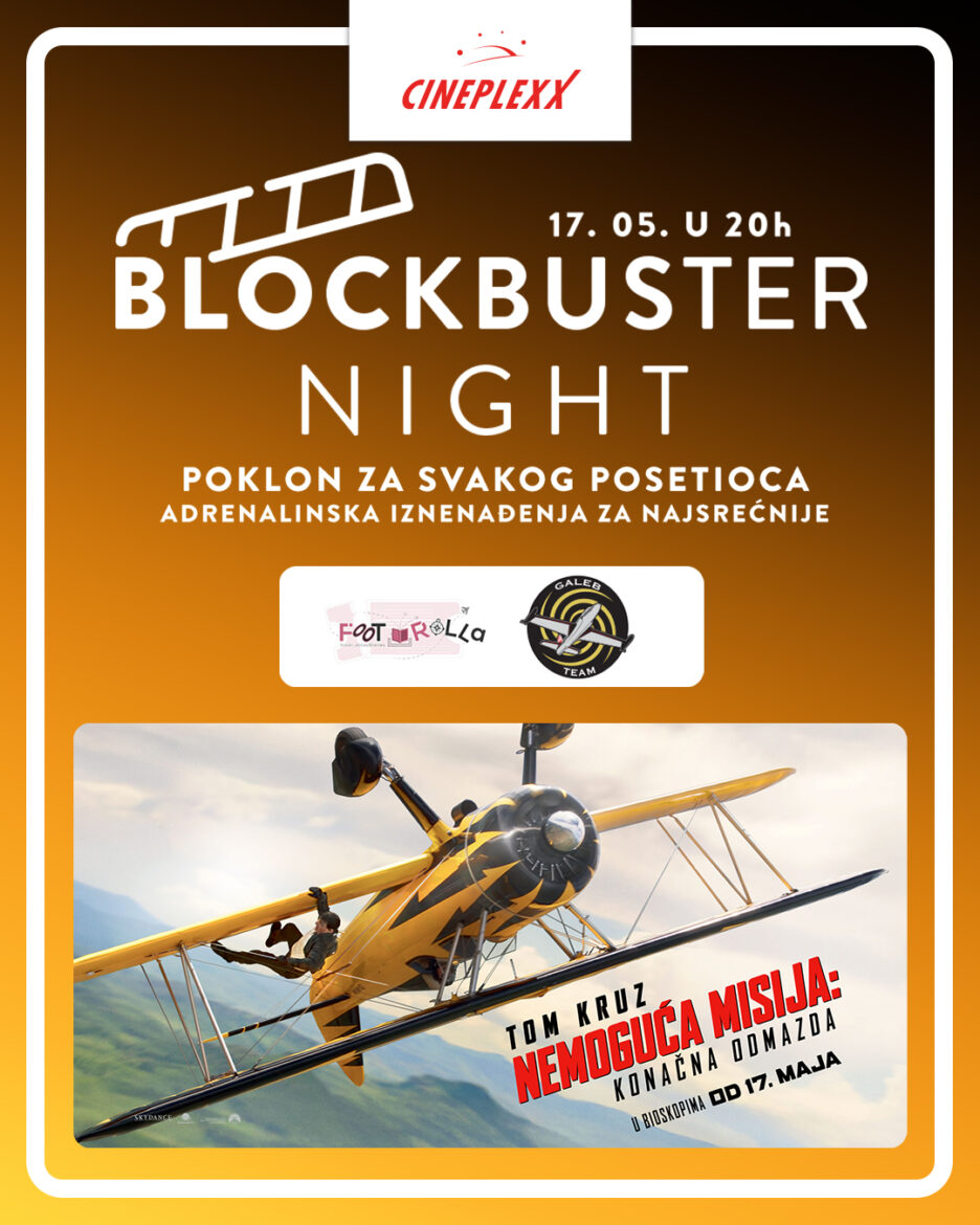 VELIKO FINALE SA TOMOM KRUZOM U ULOZI KARIJERE I ADRENALINSKIM IZNENAĐENJIMA U BIOSKOPU CINEPLEXX NOVI SAD – Tom Kruz je ponovo Itan Hant u filmu „Nemoguća misija: Konačna odmazda” u kojem izvodi telesne, mentalne i emotivne egzibicije i na veliko platno bioskopa Cineplexx Novi Sad pretpremijerno još jednom oživljava ulogu svoje karijere. Tim povodom, organizovan je Blockbuster Night u subotu, 17. maja od 20 časova, uz poklone i adrenalinska iznenađenja. Ulaznice su u prodaji! Svet je na ivici i Itana Hanta čeka izazov, najveći do sada. Pogledajte novu adrenalinsku avanturu među prvima jer svakog gledaoca očekuju specijalne agentske kartice, kao i vredni pokloni za najsrećnije! Na premijeri filma imaćete priliku da osvojite jedan od dva nezaboravna nagradna leta avionom Roben 500! Za komandama će biti iskusni pilot iz sportskog udruženja Galeb team, a možda baš vi budete među onima koji će doživeti svet iz ptičje perspektive! Najsrećnije gledaoce očekuju i pokloni u vidu futrola za pasoš za nove avanture i uspomene koje daruje Footrolla.