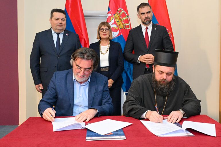 U okviru današnjeg susreta, potpisan je sporazum o bratimljenju opština Nova Crnja u Srbiji i Veliki Sen Peter u Rumuniji, kao i ugovor između Fonda za izbegla, raseljena lica i za saradnju sa Srbima u regionu i Eparhije osečkopoljske i baranjske za adaptaciju Eparhijskog dvora u Dalju.