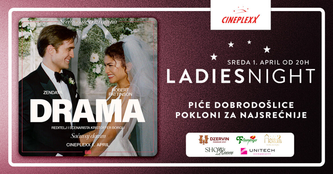 Jedan od najpopularnijih i najaktivnijih glumačkih parova, Zendaya i Robert Patinson, donose na veliko platno emotivnu priču “Drama” koju pretpremijerno gledamo u sredu, 1. aprila od 20 časova na Ladies Night događaju. Posetioce očekuju piće dobrodošlice i pokloni za najsrećnije. Ulaznice su u prodaji na blagajnama bioskopa i onlajn https://www.cineplexx.rs/purchase/wizard/1116-84458/tickets .